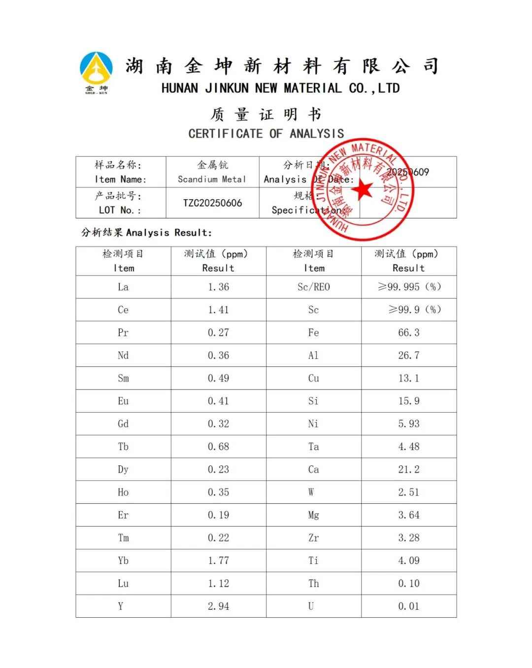 从原料到氧化钪、到金属钪等钪产品全流程生产