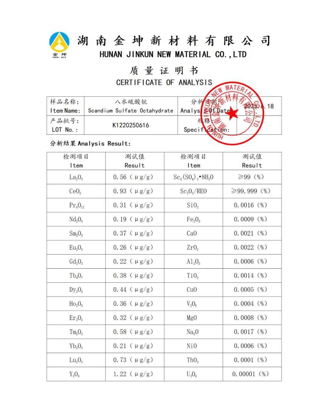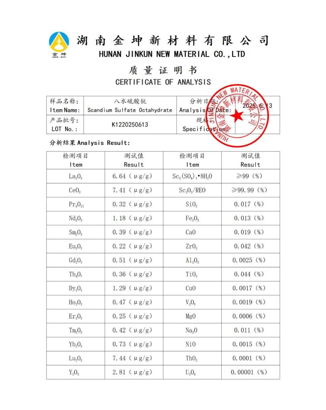 从原料到氧化钪、到金属钪等钪产品全流程生产