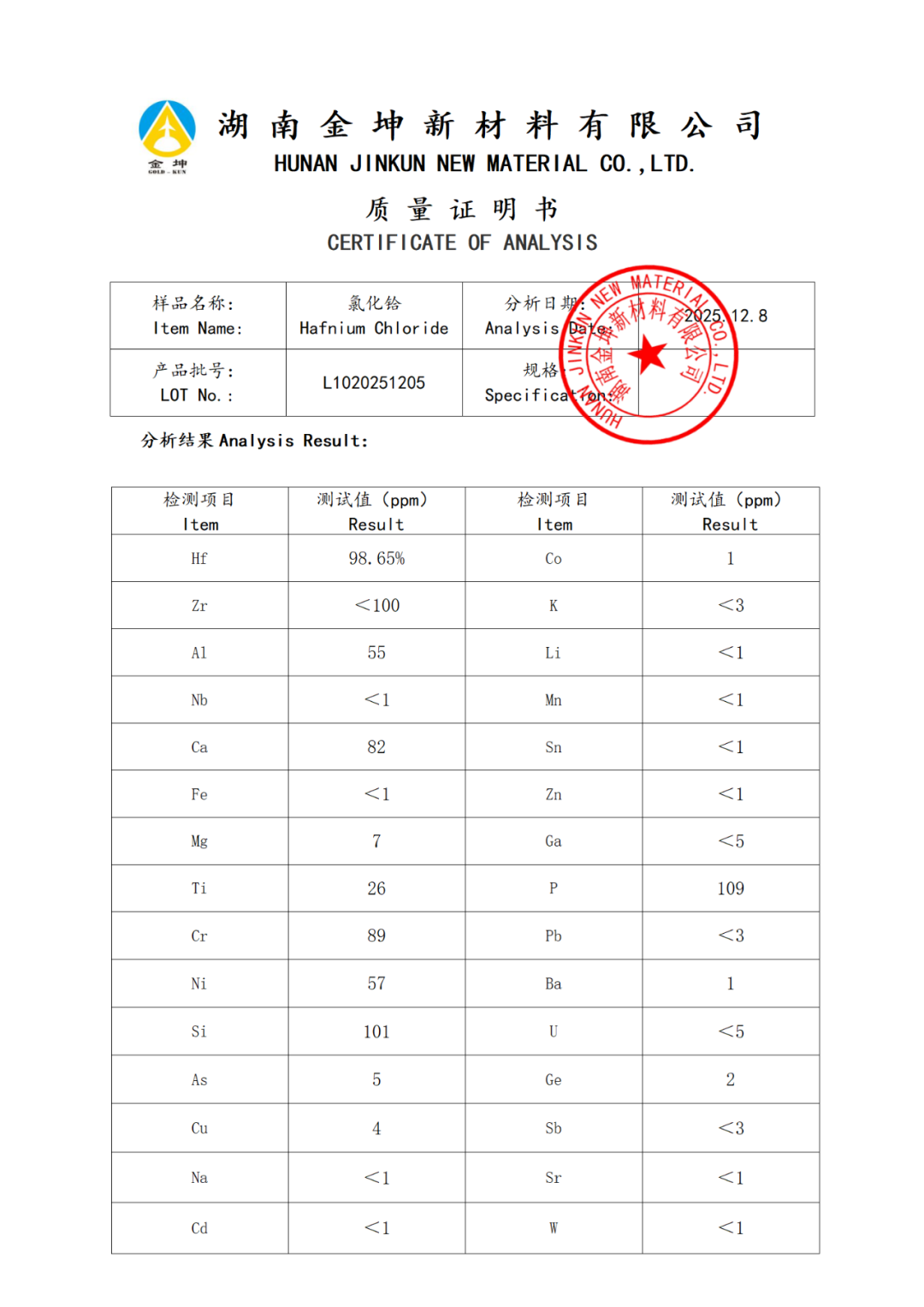 主要生产:钪、铼、铪、钽、铟、镓、锗等相关产品