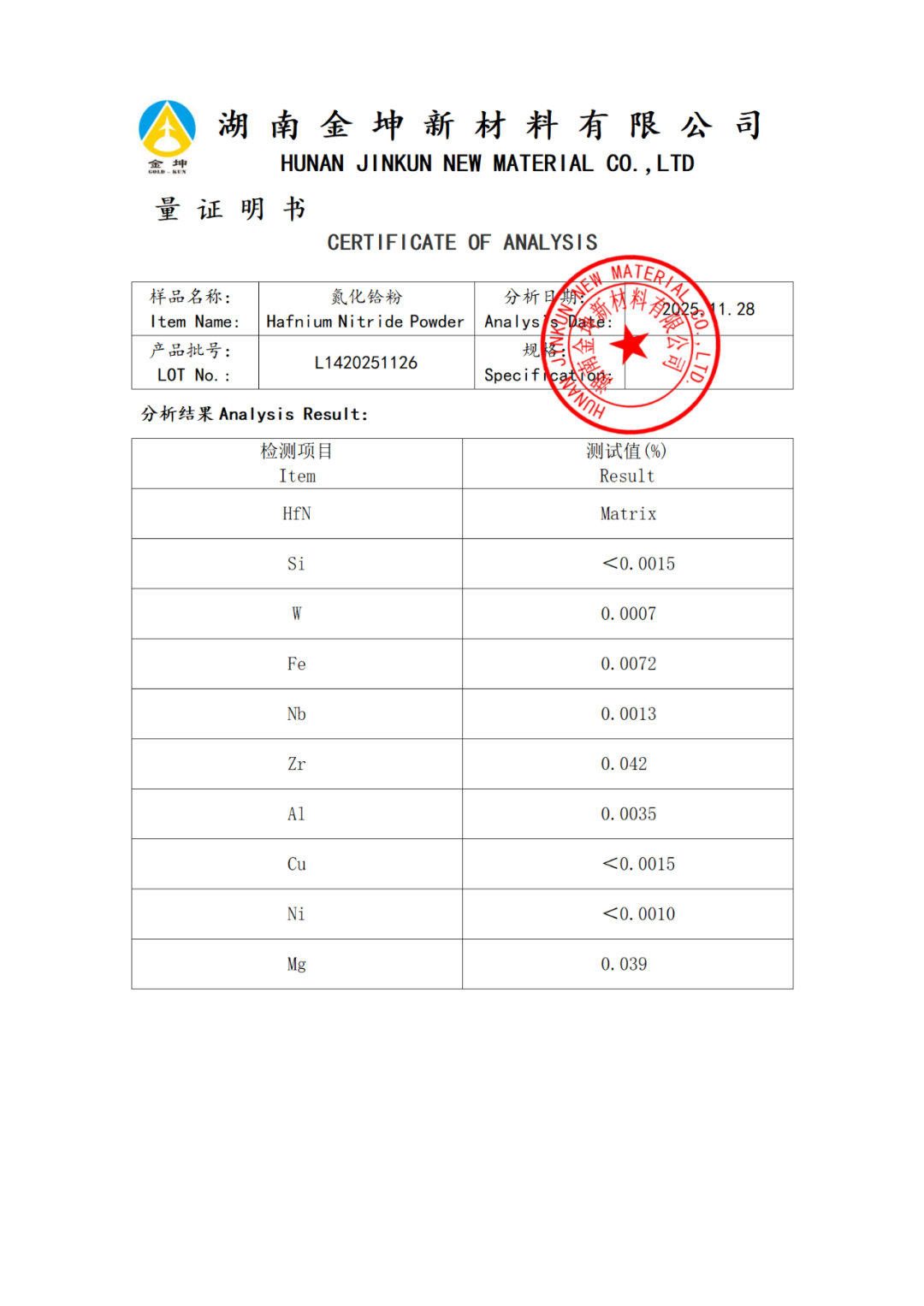 1、氮化铪粉3N—L1420251126