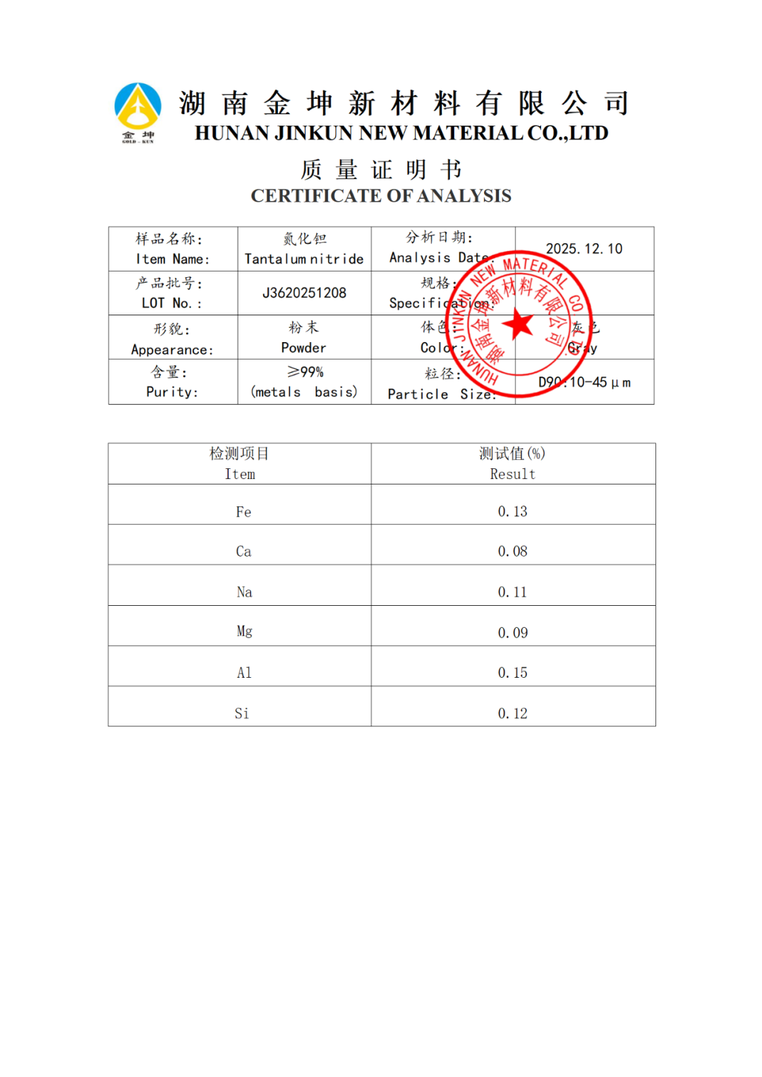 1、氮化钽2N-HBLFJ3620251208