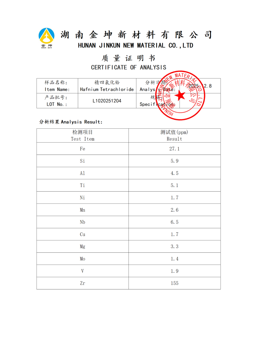 主要生产:钪、铼、铪、钽、铟、镓、锗等相关产品
