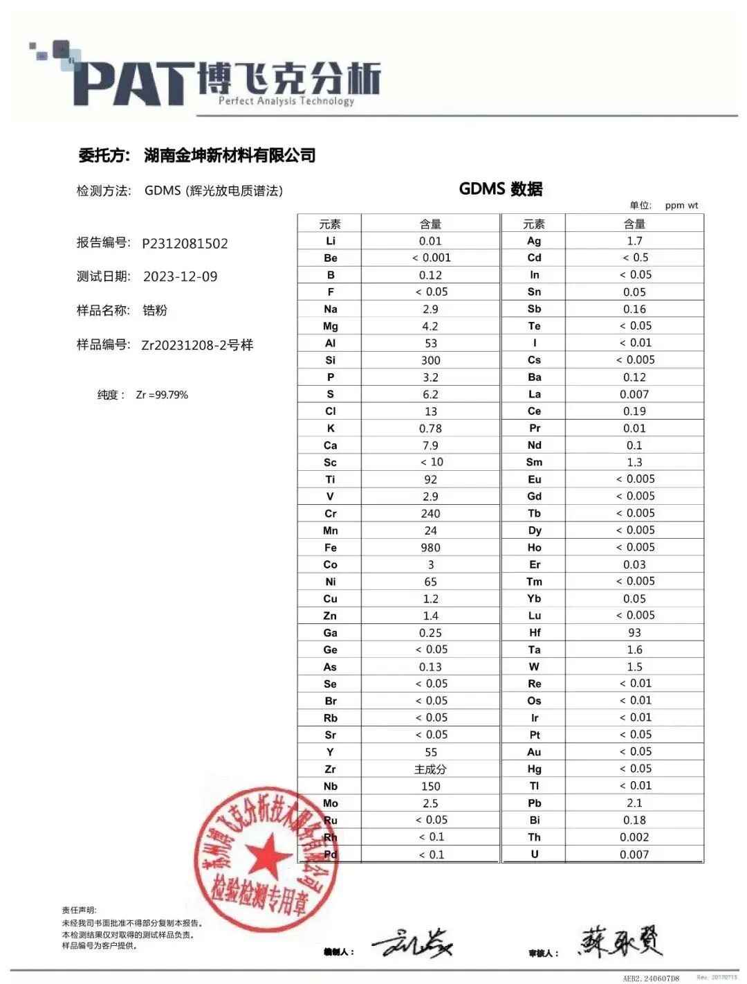 3、锆粉99.79%GDMS-P2312081502