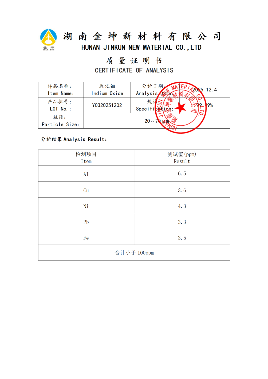 1、氧化铟4N—Y0320251204