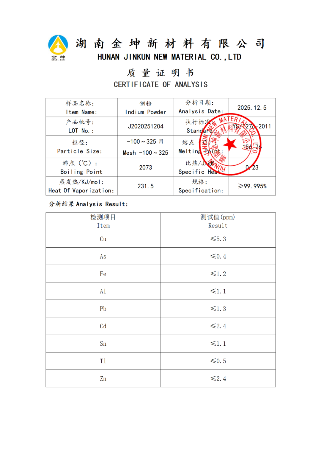 1、铟粉4N5—J2020251204