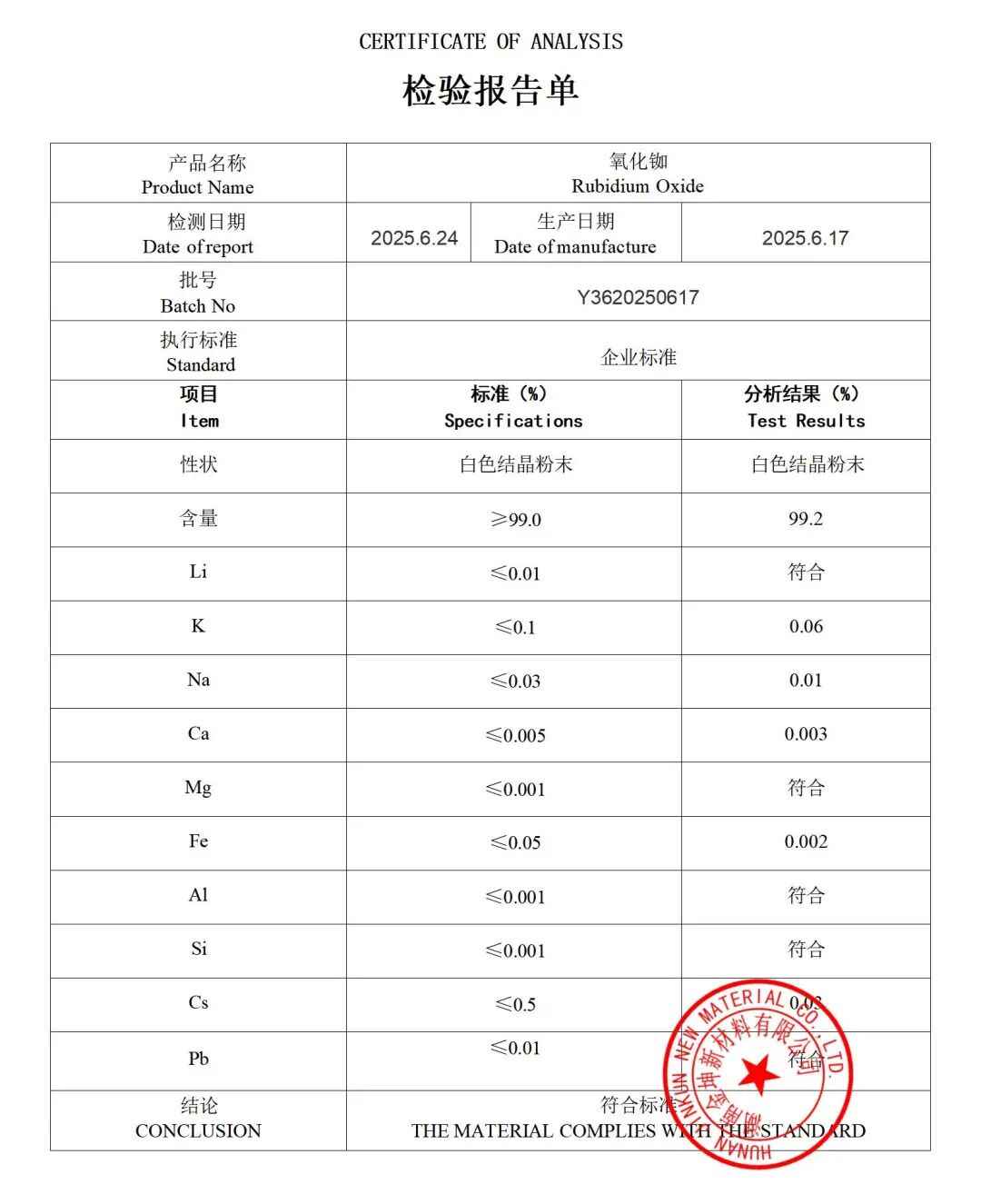 氧化铷2N—Y3620250617