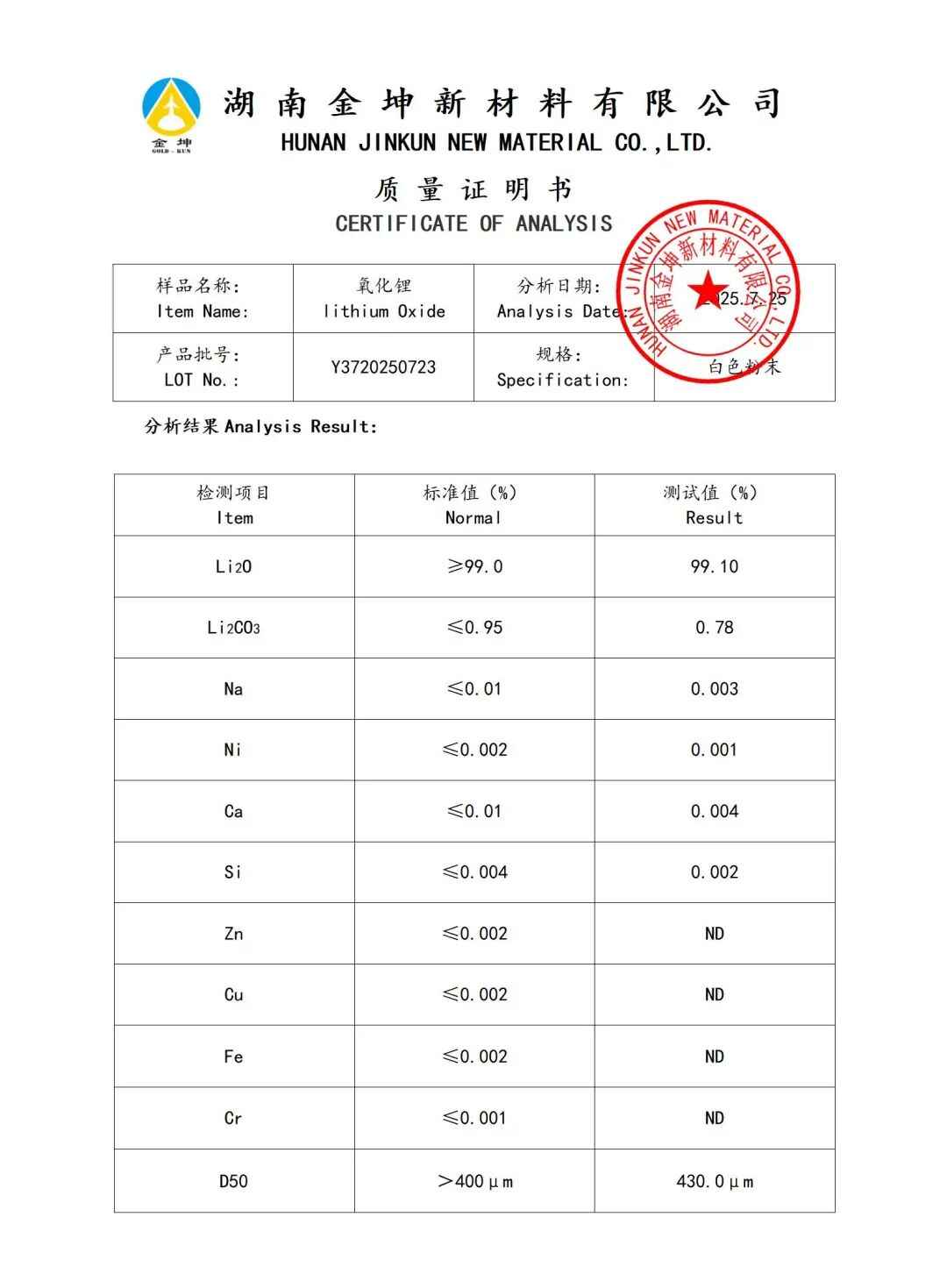 1.氧化锂2N—HBCFY3720250723