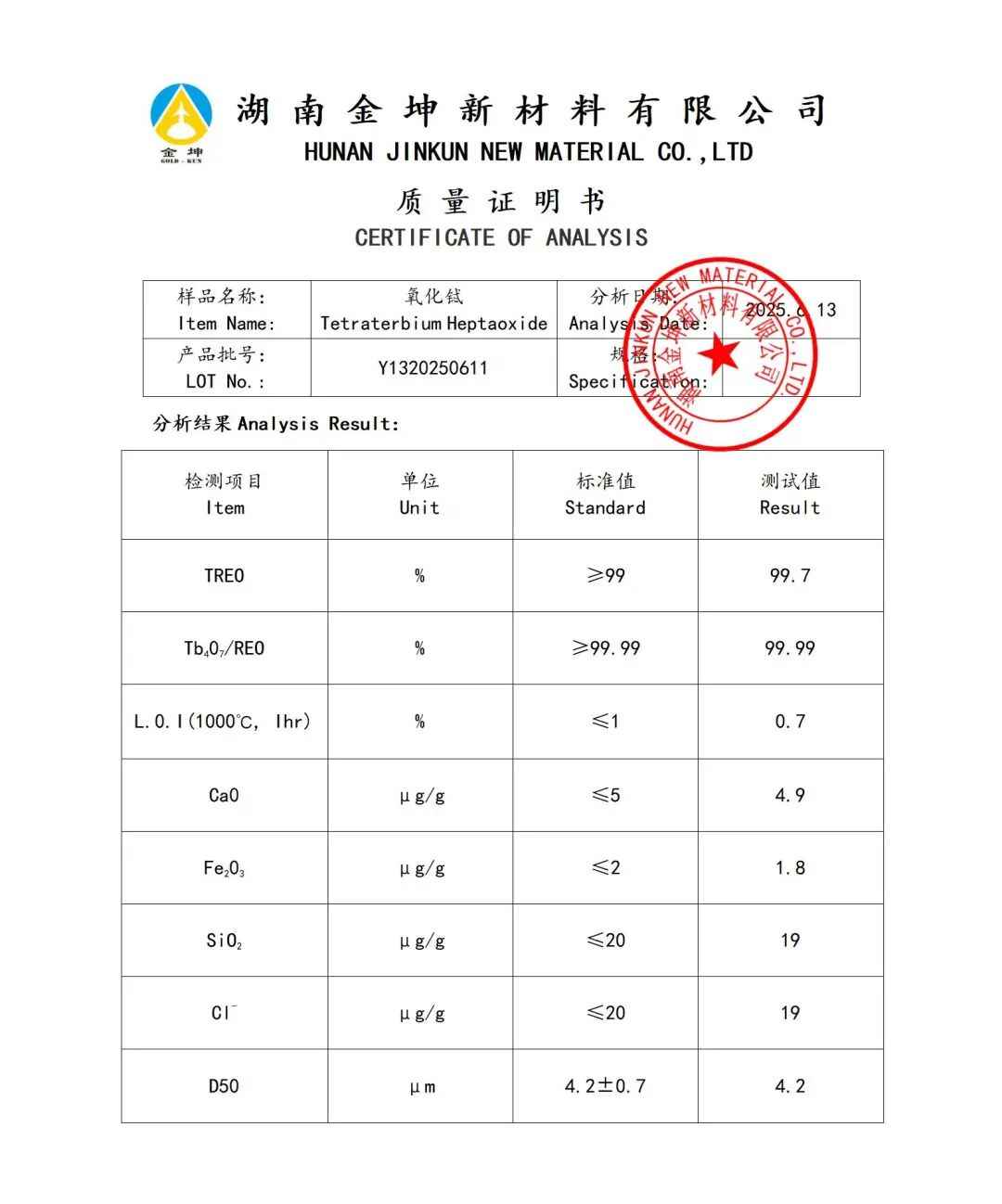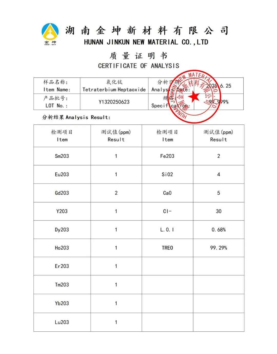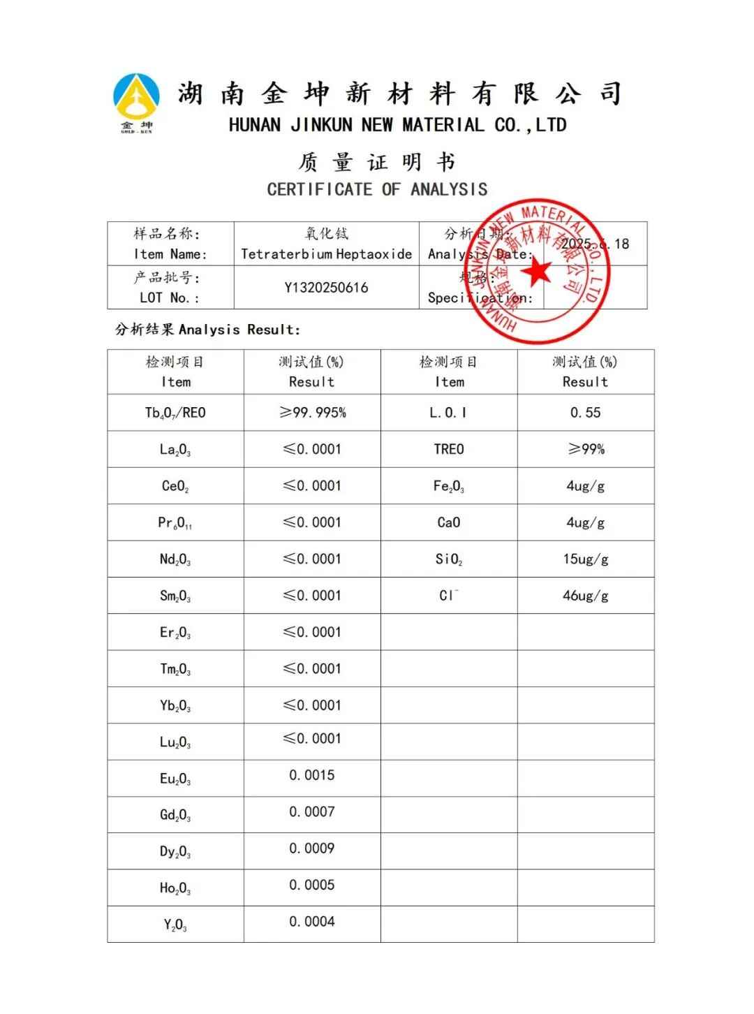 1、氧化铽4N—Y1320250611