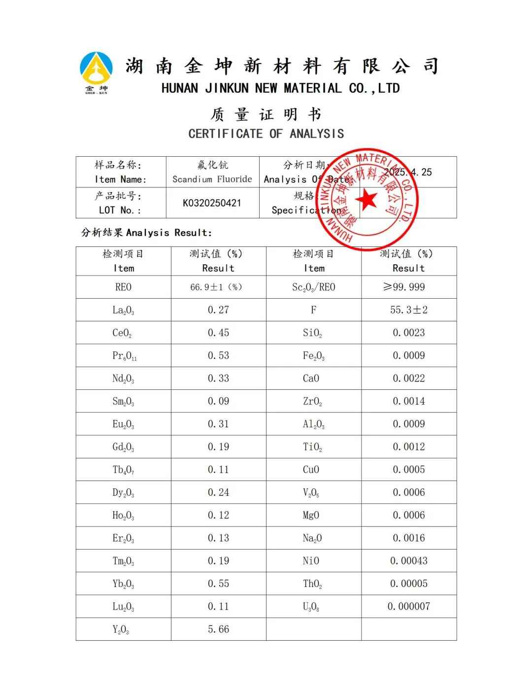 从原料到氧化钪、到金属钪等钪产品全流程生产