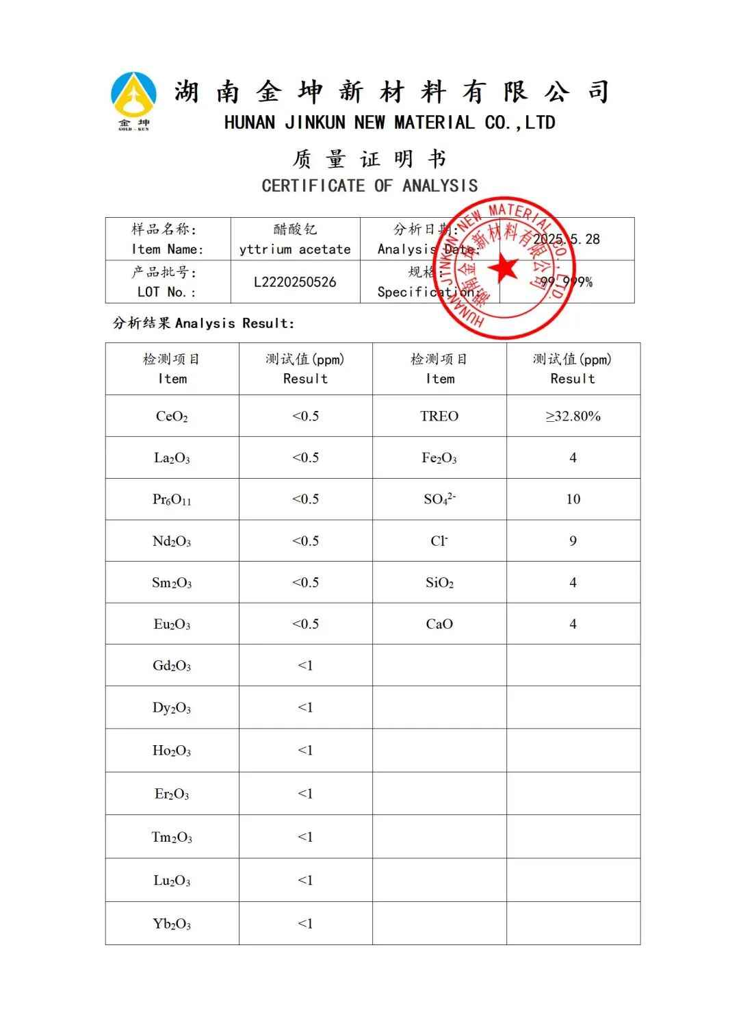 1、醋酸钇5N—JNMKL2220250526