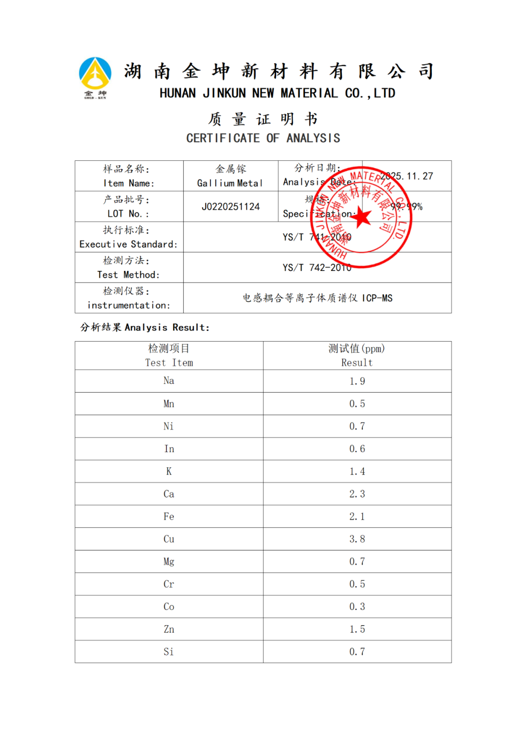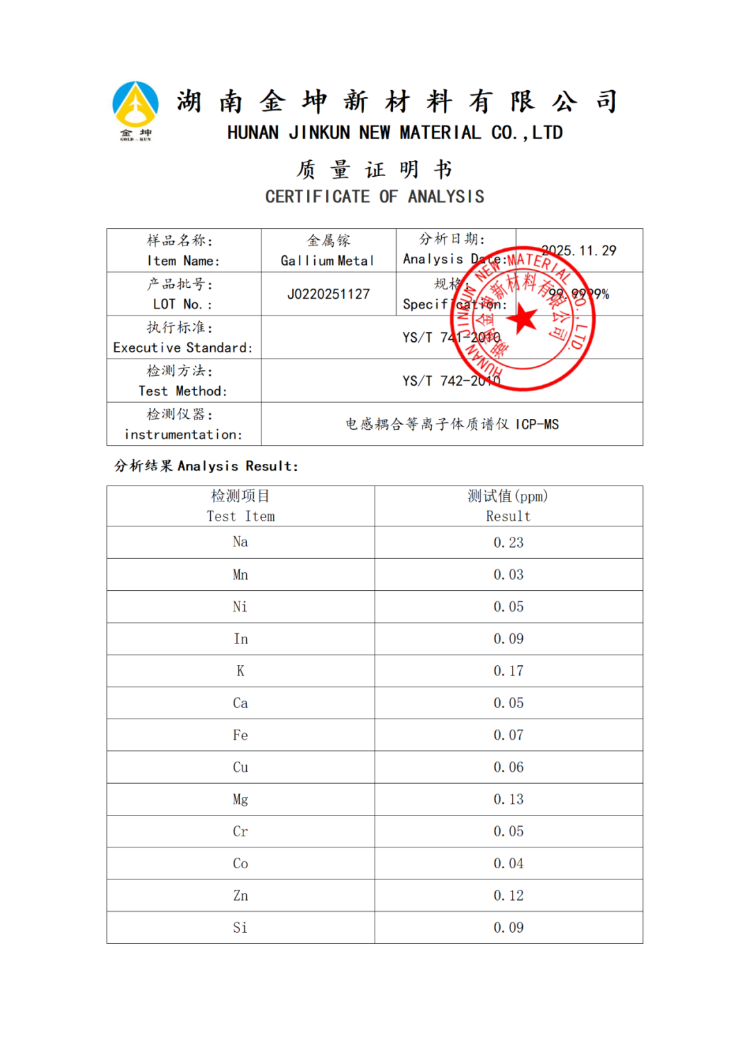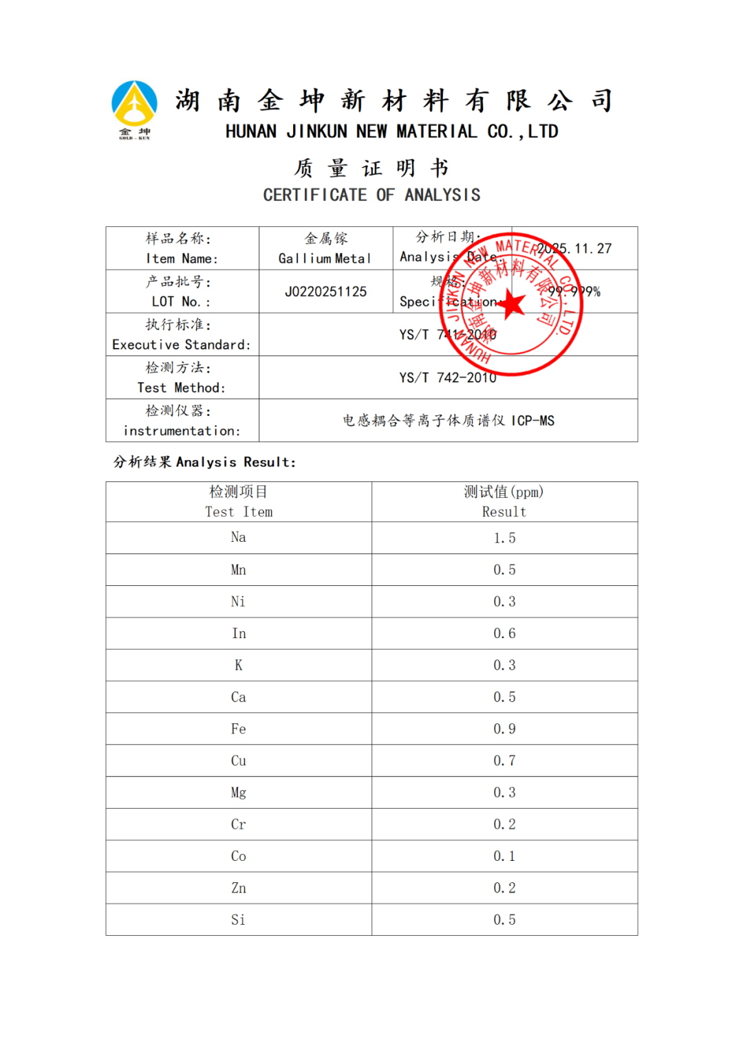 1、金属镓4N—J0220251124