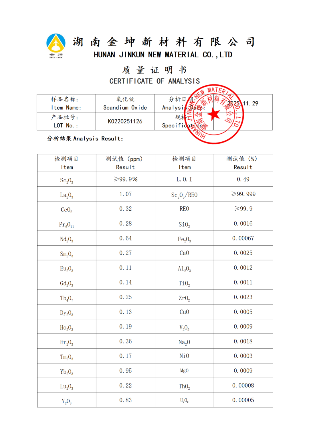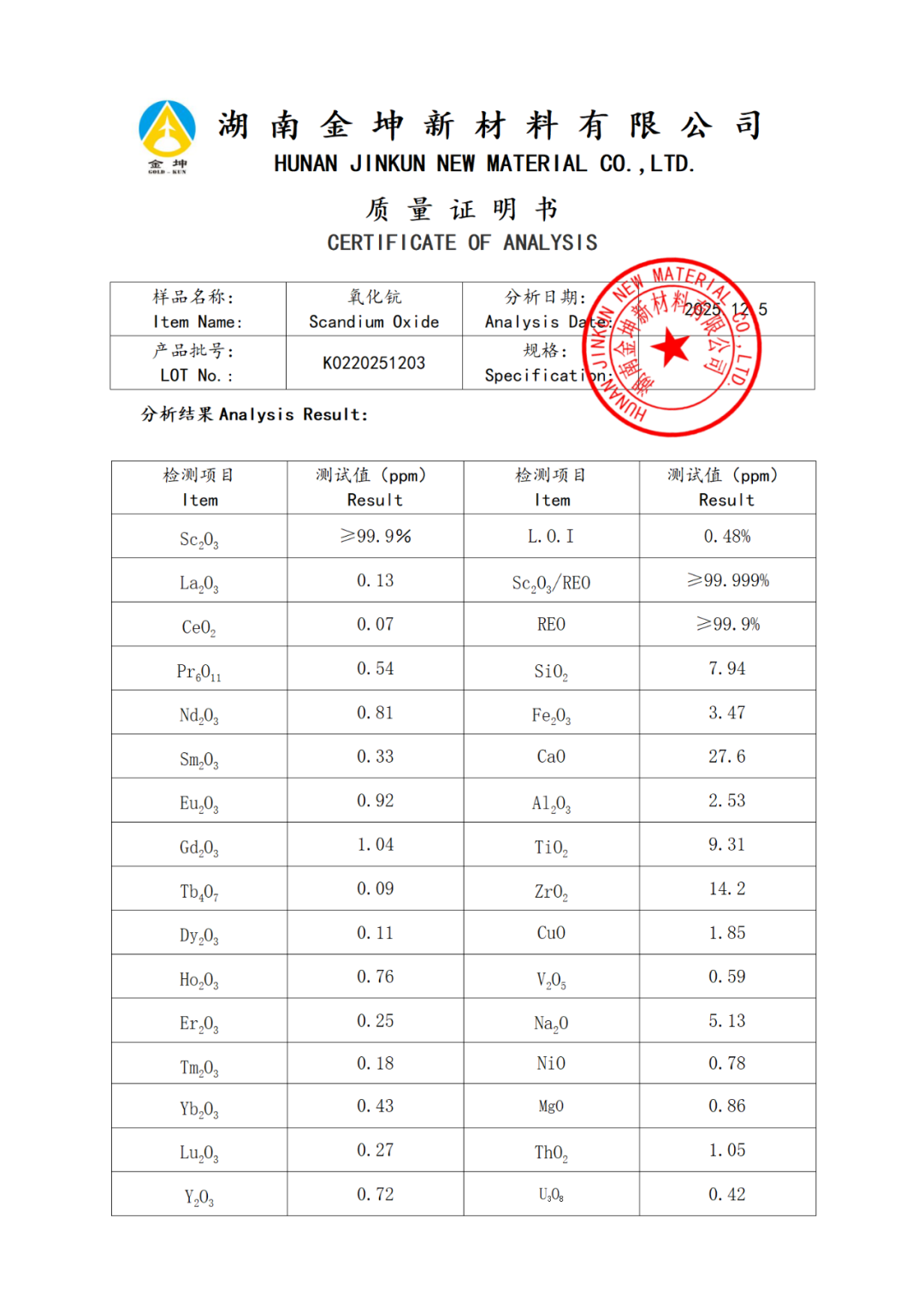 从原料到氧化钪、到金属钪等钪产品全流程生产