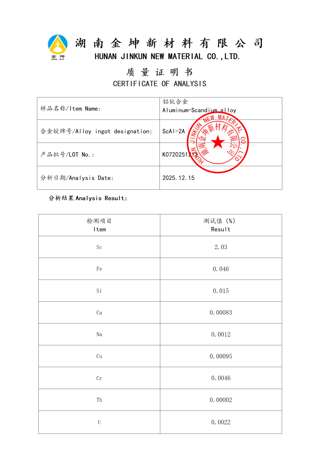 从原料到氧化钪、到金属钪等钪产品全流程生产
