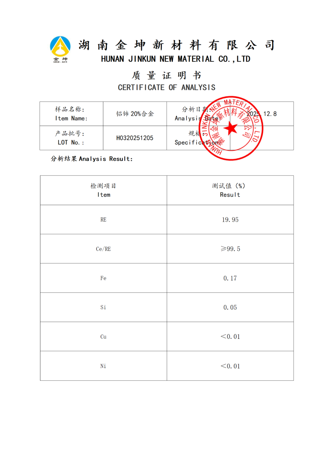 1、铝铈20%合金—GZFTH0320251205