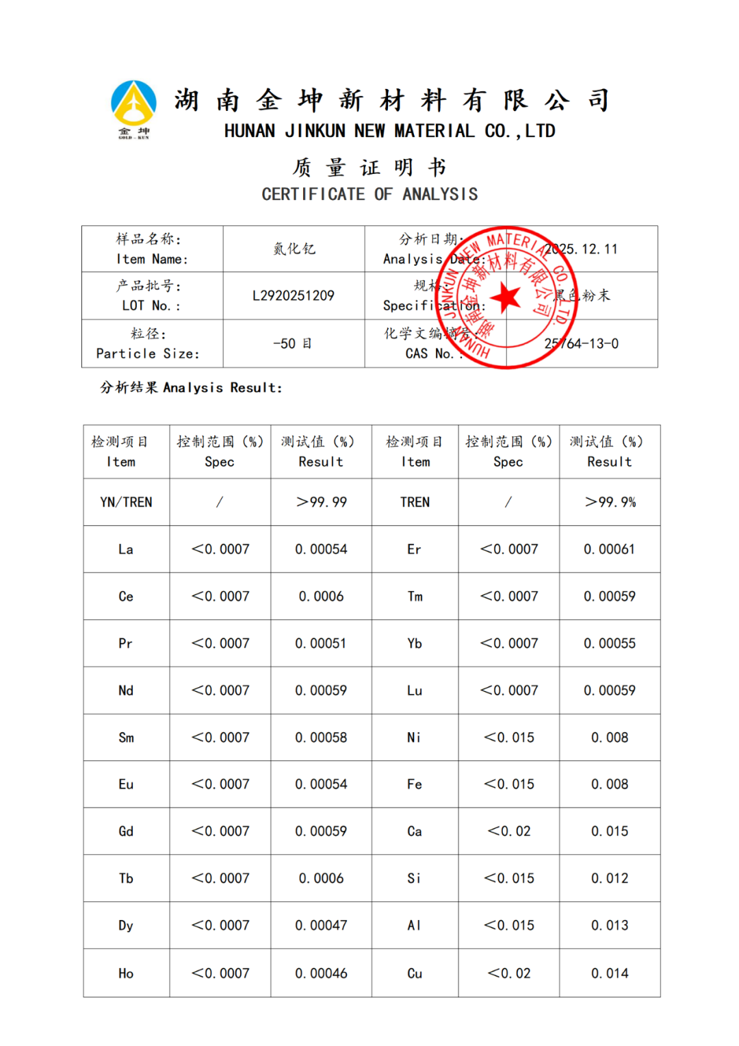1、氮化钇4N—LFGDL2920251209