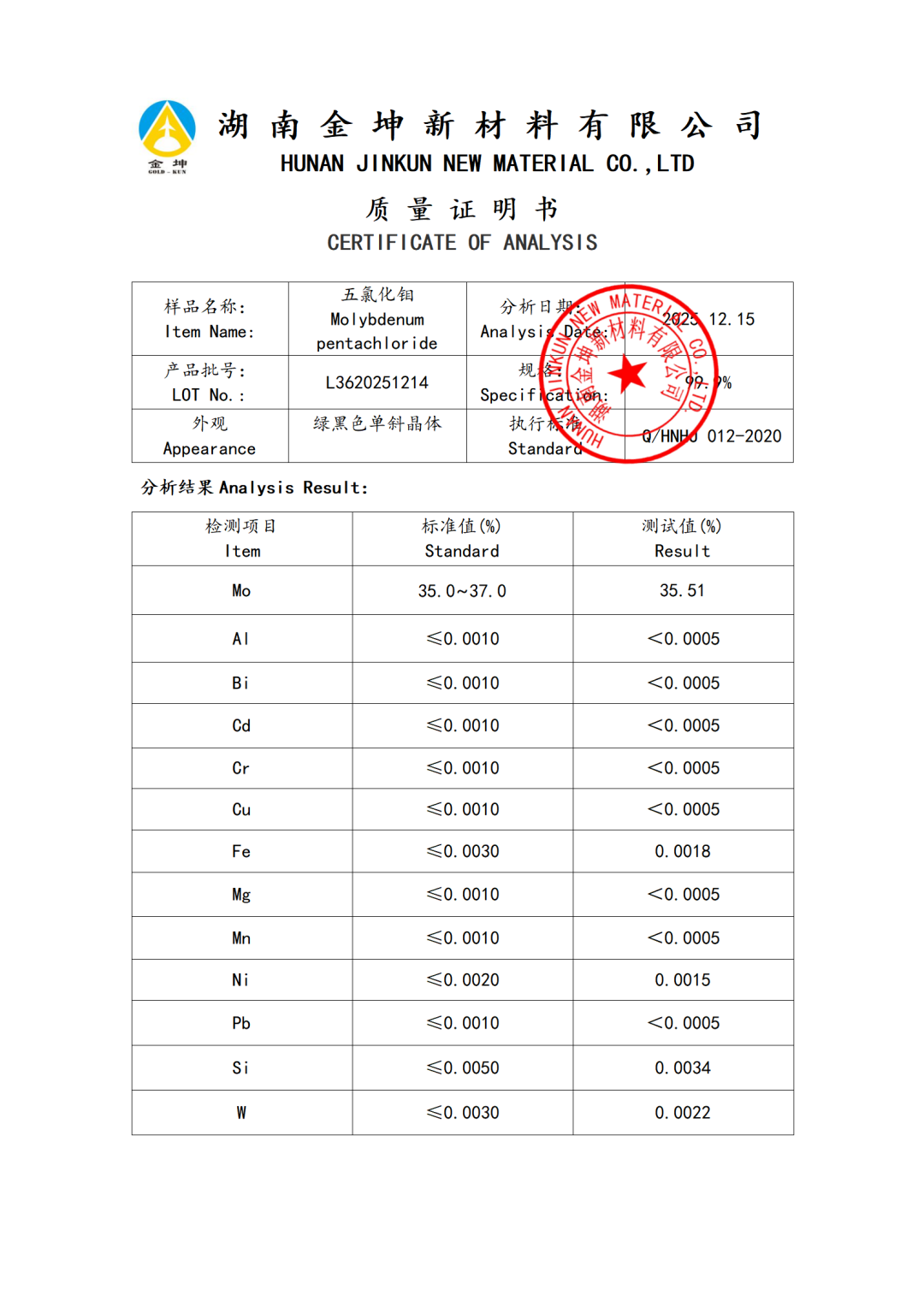 1、五氯化钼—L3620251214