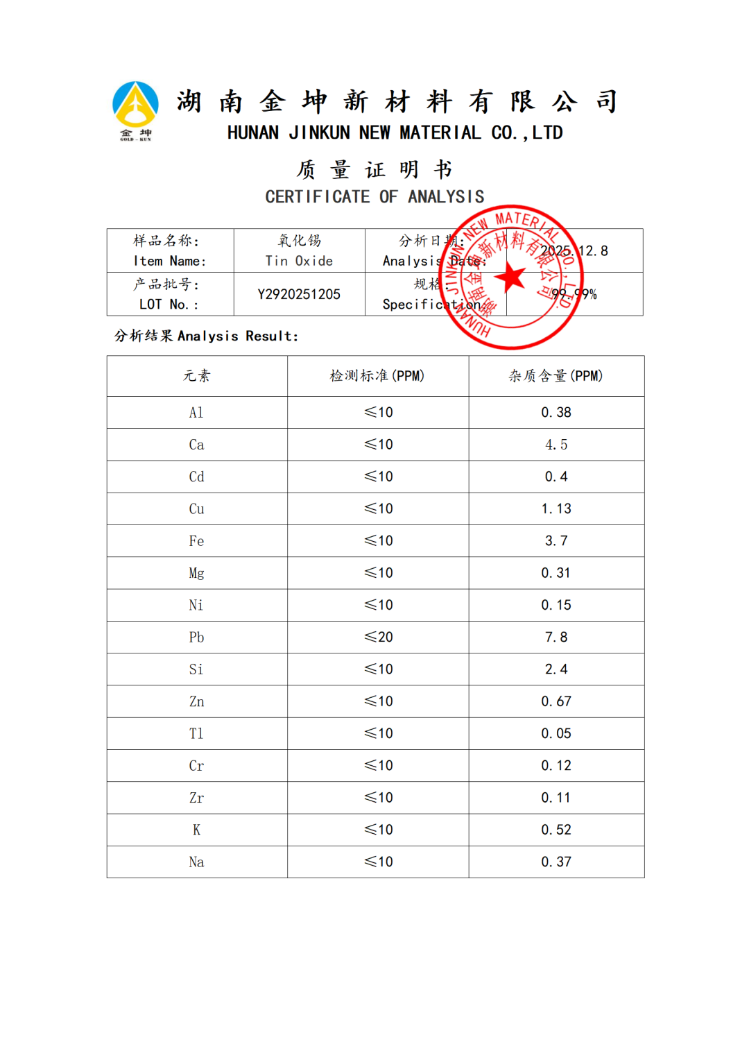 1、氧化锡4N—SCGCY2920251205