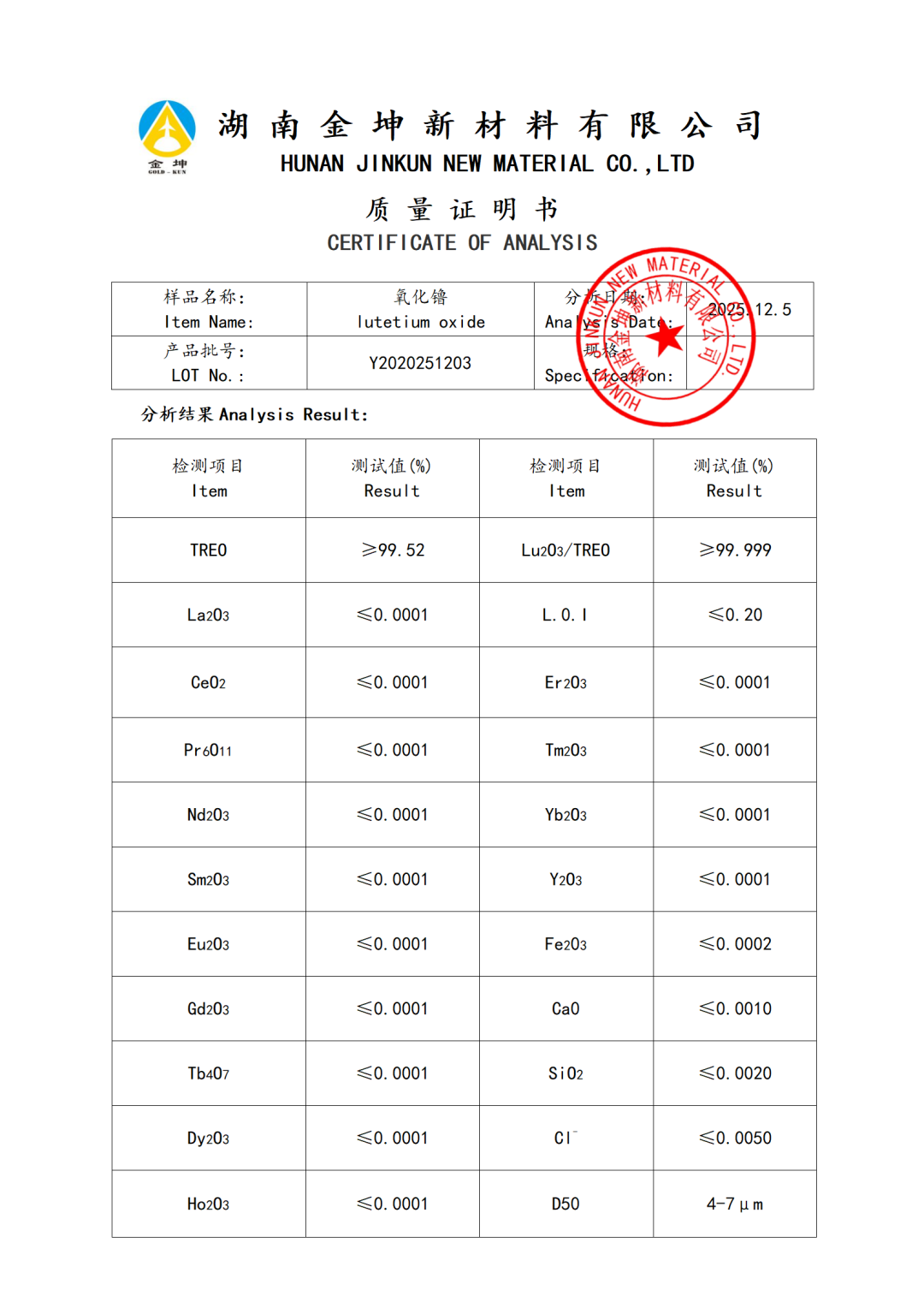 1、氧化镥4N—Y2020251205