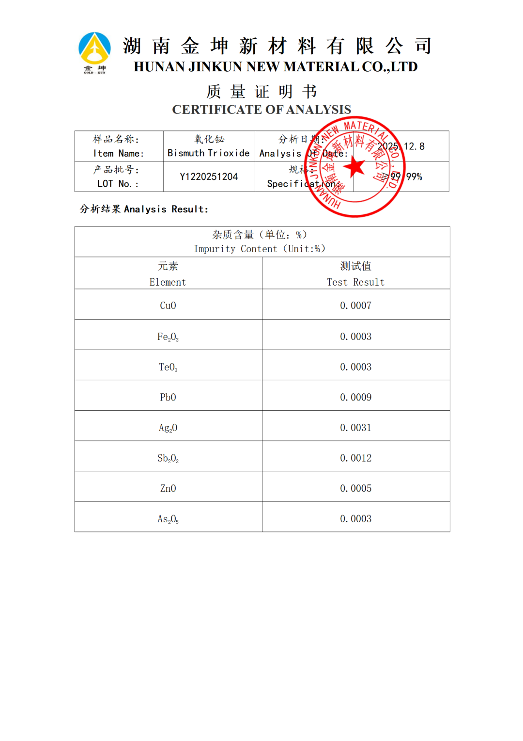 1、氧化铋4N-Y1220251204